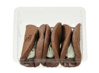 チョコ生地のパンケーキでチョコチップ入りのミントホイップクリームをはさみました。