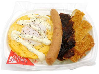 ソーセージ、玉子、チキンカツを組み合わせ、ご飯の上に盛り付けた弁当です。2025/9/9発売 -