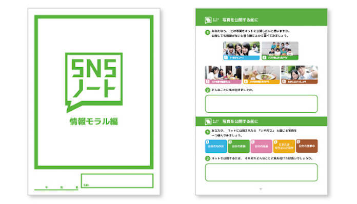 今回配布される「SNSノート(情報モラル編)」は、小学1年生~高校3年生を対象とし、「東京」よりも一歩進んだものとなっている。
