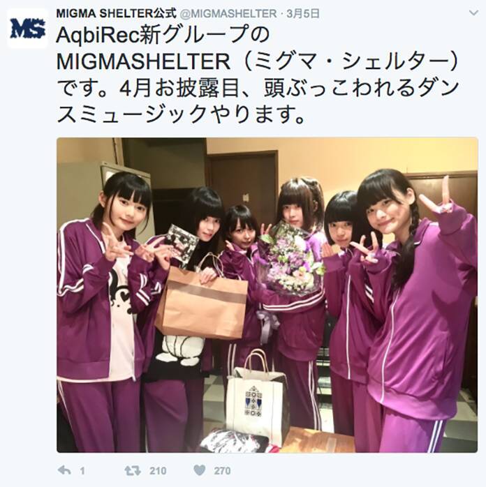 AqbiRec所属の新グループ名が発表された。その名はMIGMA SHELTER(ミグマ・シェルター)。
