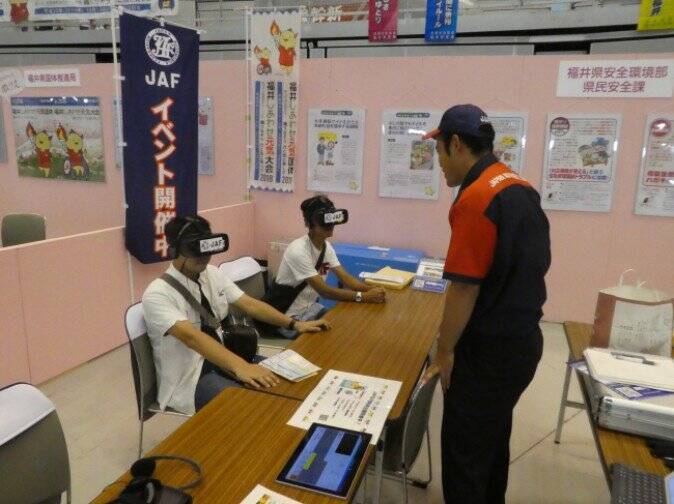 一般社団法人 日本自動車連盟(JAF)の福井支部は、VRを活用して「後席シートベルト非着用の危険性」を体感できる取り組みを進めています。VR体験を通して、体験者の交通安全意識向上につなげることを目的としています。