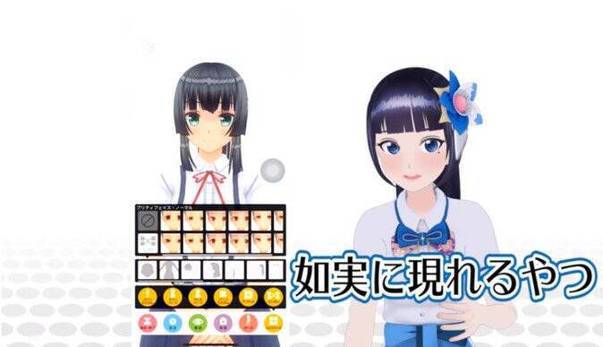 「カスタムキャスト」は、「ヘアスタイル」や「フェイス」「ボディ」「コスチューム」「アクセサリー」など、複数の設定項目から自分好みの美少女キャラクターを作成できるアプリです。スマートフォン用アプリ「nicocas(ニコキャス)」と連携して生放送を配信することも可能です。フェイストラッキングはiPhoneX以上対応、それ以下のiPhoneシリーズやAndroidでは、顔の向きや音声に応じた口の動きなどが反映されます。