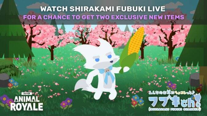 ホロライブ所属のVTuber(バーチャルユーチューバー)の白上フブキさんは、マルチシューティングゲーム「Super Animal Royale」とのコラボを発表しました。白上フブキさんをモチーフにしたアイテムが、6月14日22時から実施される生放送にて限定配布されます。配信ページはこちら。
