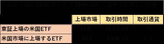「東証上場の米国ETF」は日本時間に円で取引できること、「米国市場に上場するETF」は現地時間に現地通貨(主に米ドル)で取引できることが強みです。