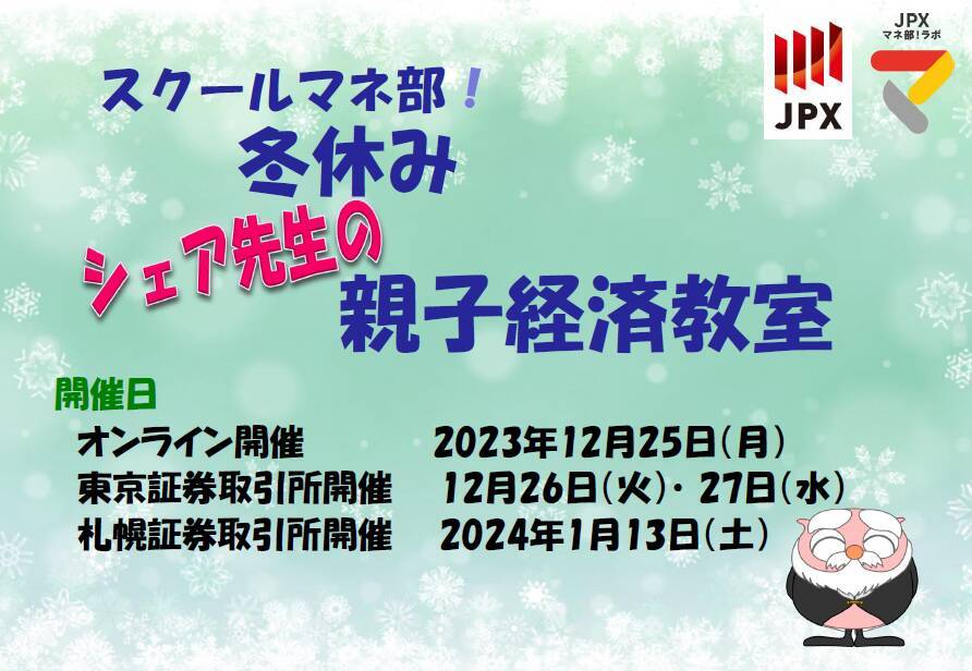 スクールマネ部! 冬休み「シェア先生の親子経済教室」を開催します。