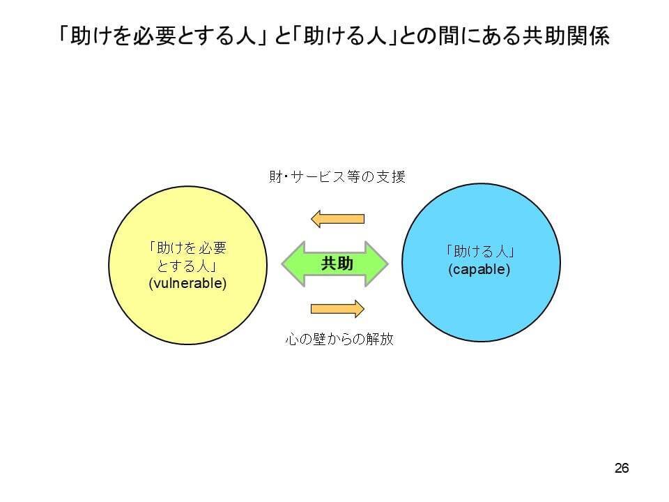 「助けを必要とする人」と「助ける人」は互いに与え合い、助け合う関係にある。