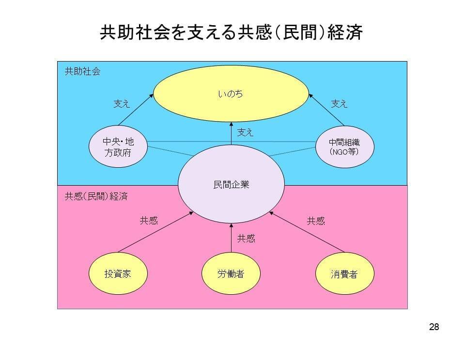 「もうひとつ押さえておきたいのは、投資家・労働者・消費者・納税者・市民の全員が『助けを必要とするいのち』でもあるということです。共感経済によって支えられる共助社会が、結局はいのちがいのちを支える自助システムであることがわかると、あらゆることが他人事ではなく、自分たちのいのちは自分たちで支えていくものだという意識が芽生えていくでしょう。そうなると、より一層共感が生まれやすくなると思います」
