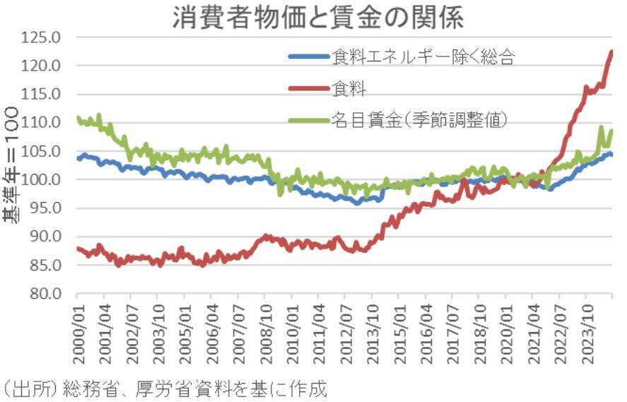 近年は「生鮮食品及びエネルギーを除く総合指数」と比べて「生鮮食品」が大きく上がっているため、「悪い物価上昇」と分析できる。
