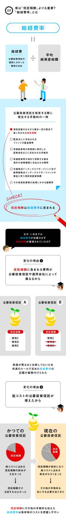 2024年4月から、公募投資信託の目論見書に「総経費率」が記載されるようになった。公募投資信託の運用にかかった費用を合計した総経費を平均純資産総額で割ったもの、つまり運用時にかかるコストの目安を表すものだ。