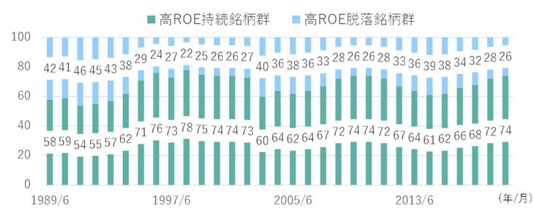 「高ROE持続銘柄群」と「高ROE脱落銘柄群」の銘柄数推移