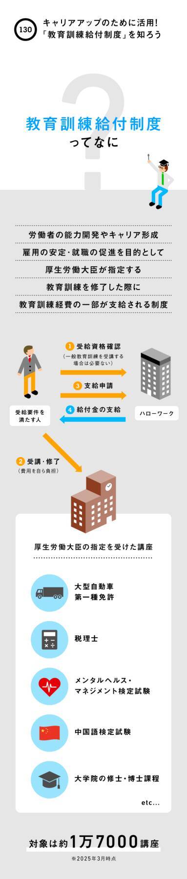 少なくとも費用の20~50%が戻ってくる「教育訓練給付制度」。リスキリングやキャリアアップを考えている人は、役立ちそうな資格や講座が対象になっているか、確認してみよう。