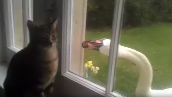 [Swan attacking a cat/YouTube]