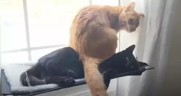 [Kitty Sits on Top of Sister in Cat Hammock || ViralHog/YouTube]