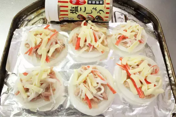 「【食材3つ“焼くだけ”レシピ】これで新玉1個分!ツナとカニカマとチーズ乗せてトースター10分で優勝!」の画像