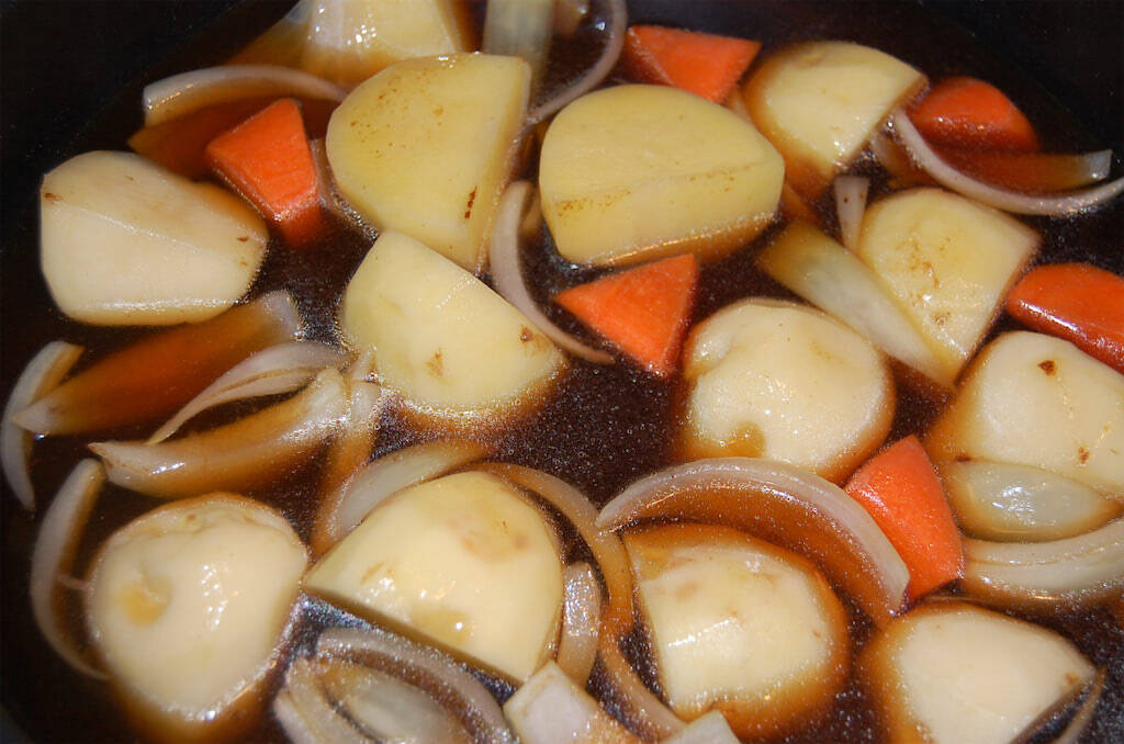 そして、じゃがいもは、ほっくほく。理想的な食感です。玉ねぎはとろっとやわらかく、にんじんも芯が残らない程度に、やわらかく煮えています。