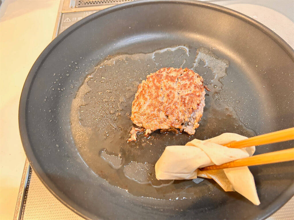 ただ、今回はジューシーさを出したいので、油は多少残しておくのがいいみたいです。