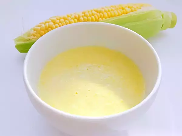 完成して器に盛り付けたコーンポタージュ