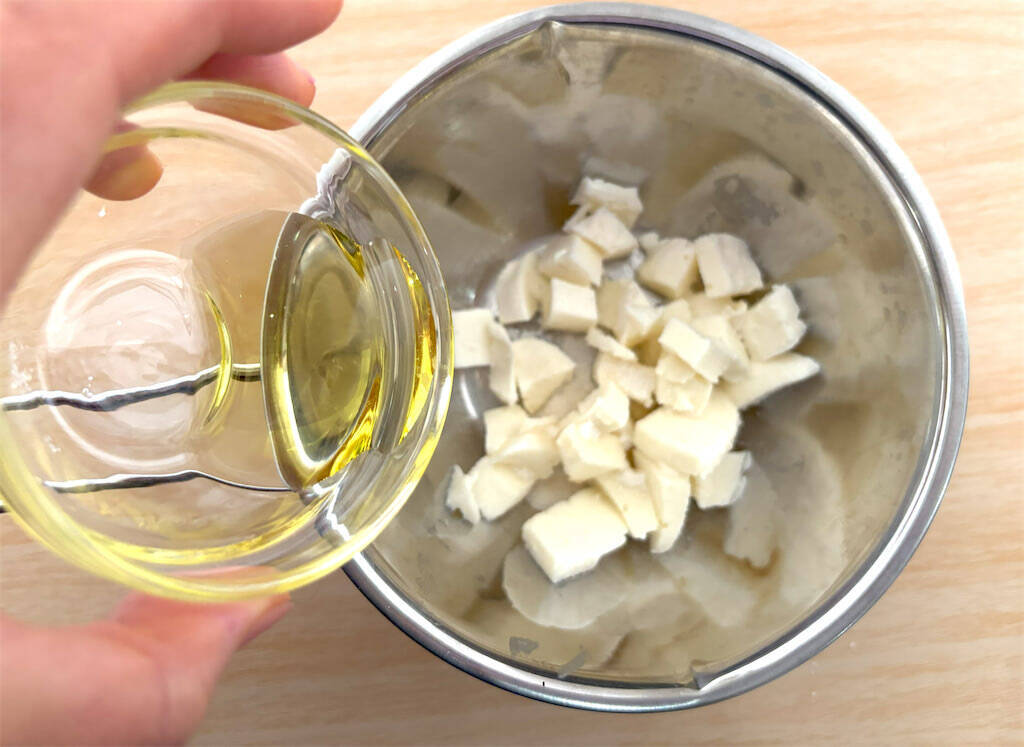 オリーブオイルと塩を加えてよく混ぜます。