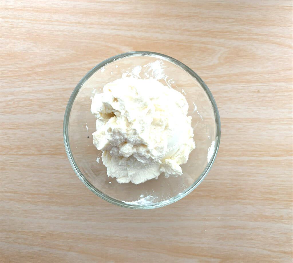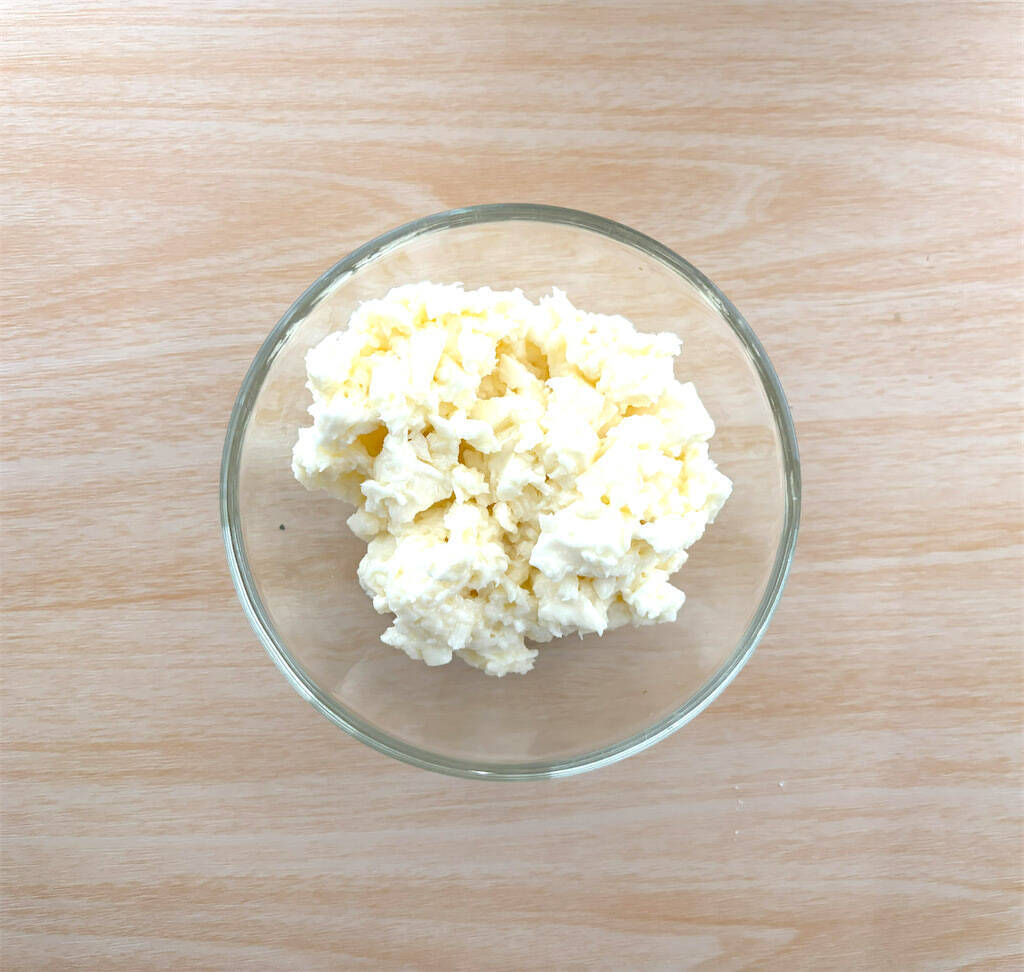 スプーンの背でチーズを潰すようにしながら混ぜると、下の画像のようなきれいな仕上がりになります。