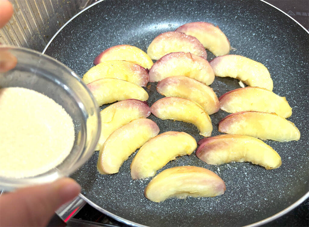 【桃のキャラメリゼの作り方】調理時間は約30~40分です