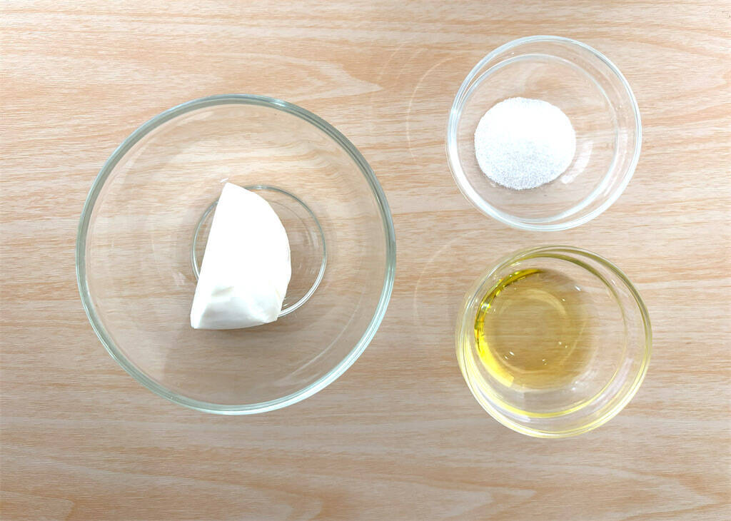 今回の動画の中で、塩味のチーズクリームには「モッツァレラブッラータ」というチーズを使用していましたが、近所のスーパーマーケットでは見当たらなかったので、普通の「モッツァレラチーズ」を使用しました。