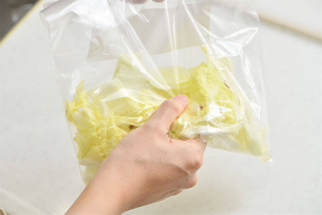 3. ジッパー付き保存袋に2を入れ、白だしと塩、1を加えてから軽く揉む。