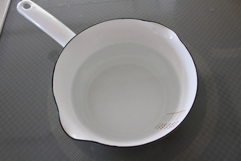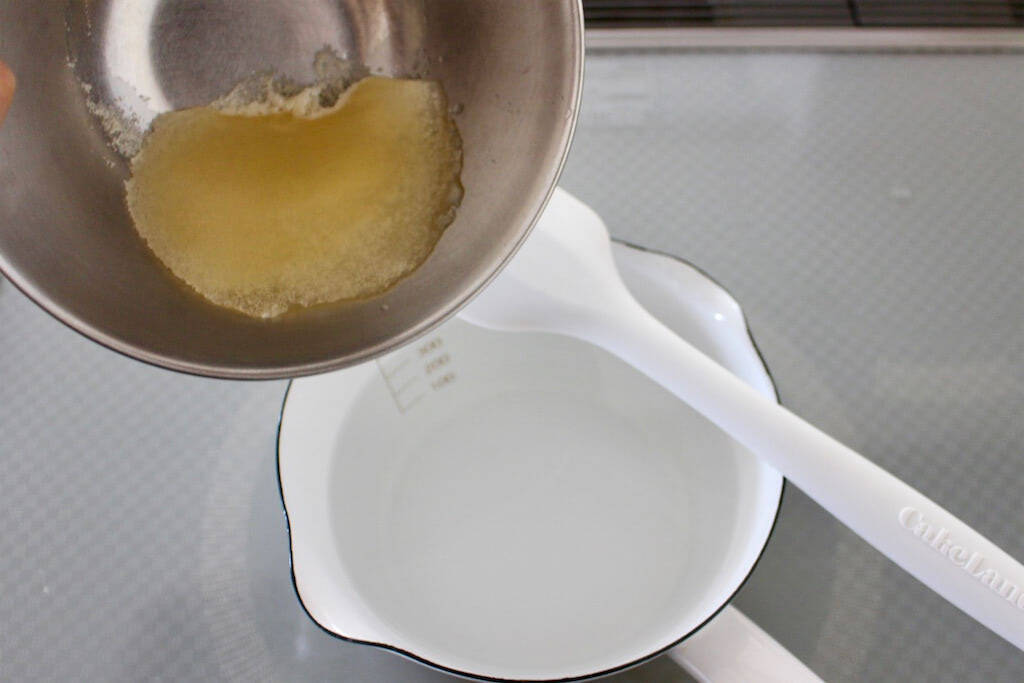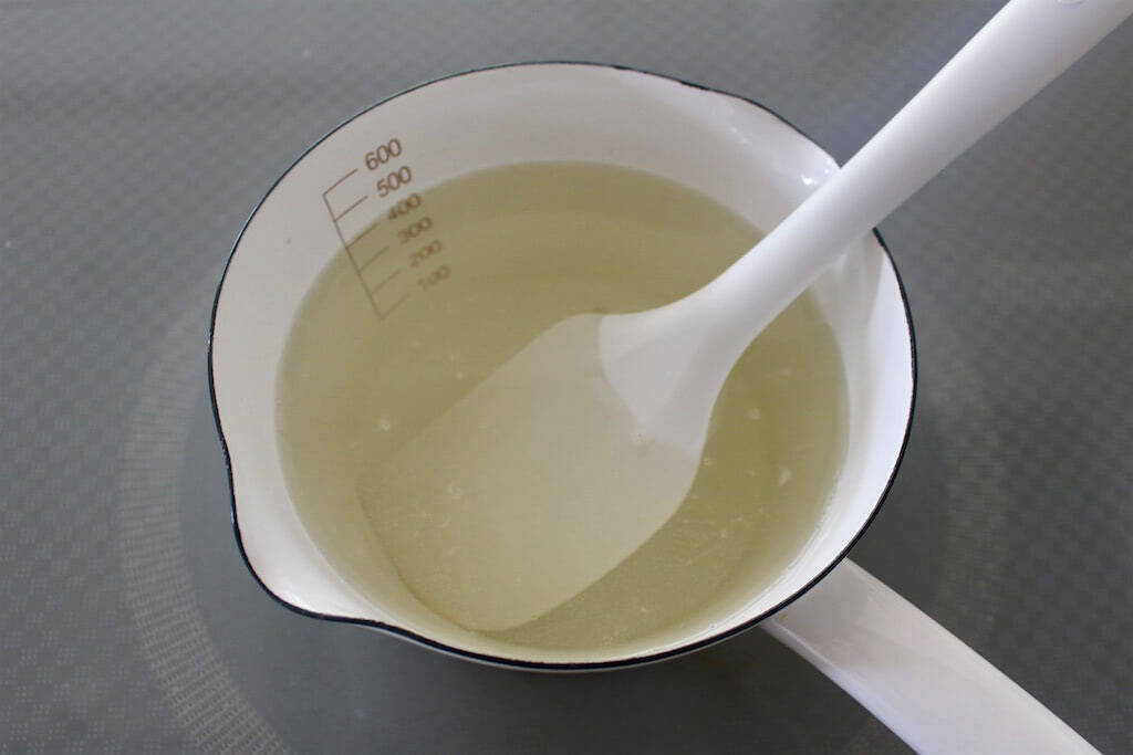 4.小鍋に水を入れて沸かし、砂糖を加えて溶かす。