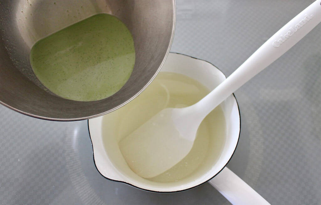 あまり熱いうちに加えてしまうと、ゼラチン特有の匂いが出たり固まる力が弱くなる場合あるのでご注意ください。