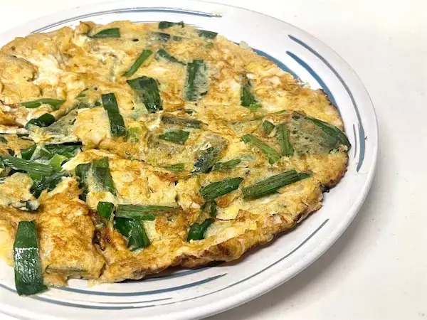 ニラ玉といえば、半熟卵に仕上げることが多かったので、今回のようにしっかりと焼くのは初めてでした。