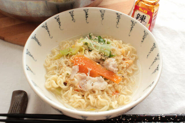 インスタント麺を加えて「塩ラーメン」にしてみた♪