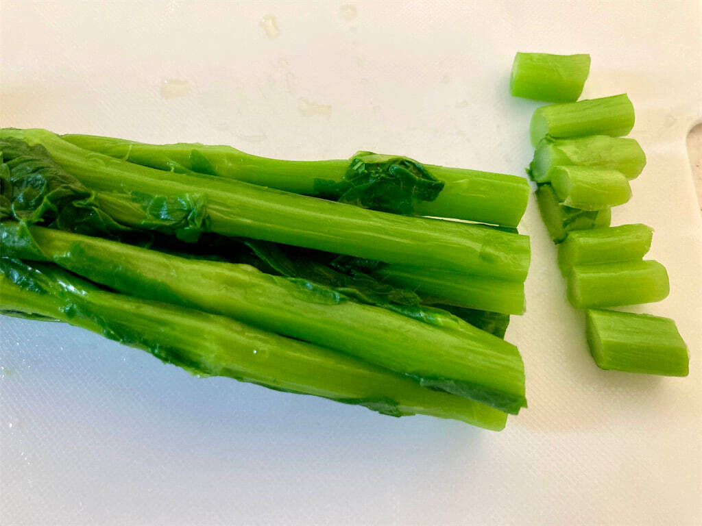 1.鍋に湯を沸かし、塩を入れます。洗った菜の花を入れて1分ほどさっと茹でます。