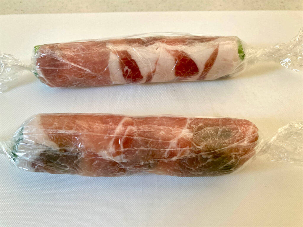 豚肉を麺棒で叩くことで、豚肉同士がくっつき、巻きやすかったです。菜の花はしっかりと絞ることで、水っぽくならずに菜の花の味をしっかり楽しめました。まさか菜の花と豚肉を海苔巻きのように巻いて、最終的に輪切りにするっていう発想、思いつきませんでした。