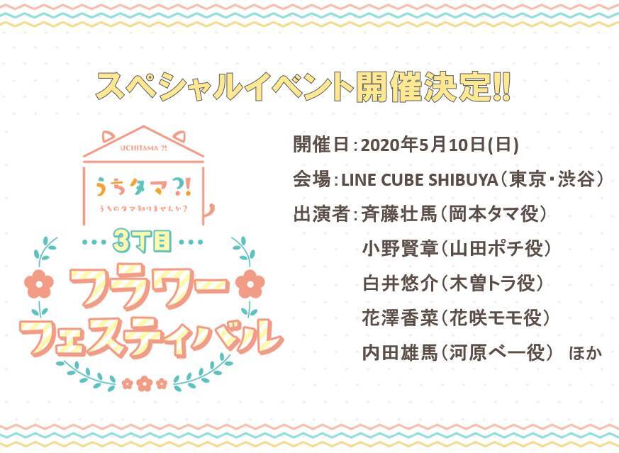 「うちタマ?! ~うちのタマ知りませんか?~ 3丁目フラワーフェスティバル」日時:2020年5月10日(日)