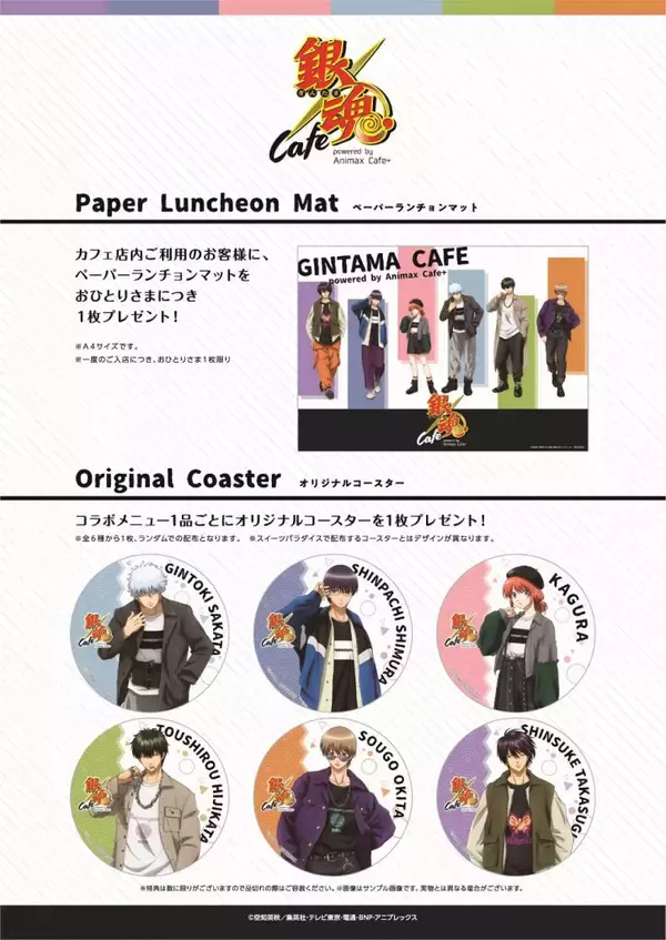 「『銀魂』×「Animax Cafe+」&「スイパラ」コラボカフェ開催決定!コラボメニュー&グッズ詳細解禁」の画像5 「『銀魂』×「Animax Cafe+」&「スイパラ」コラボカフェ開催決定!コラボメニュー&グッズ詳細解禁」の画像6 「『銀魂』×「Animax Cafe+」&「スイパラ」コラボカフェ開催決定!コラボメニュー&グッズ詳細解禁」の画像7 「『銀魂』×「Animax Cafe+」&「スイパラ」コラボカフェ開催決定!コラボメニュー&グッズ詳細解禁」の画像8