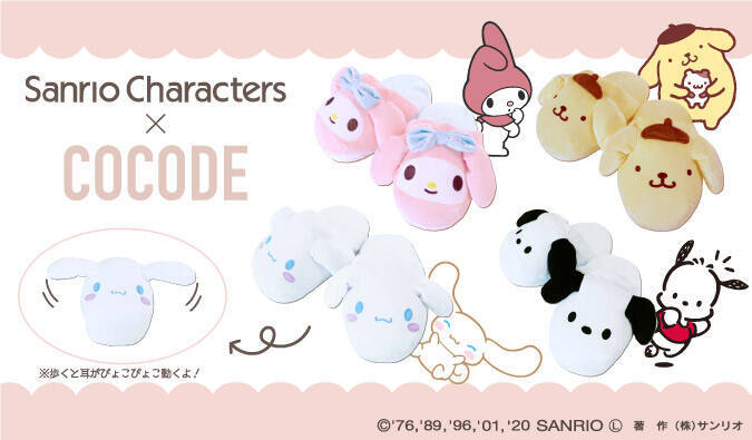 オラインショップ「COCODE」より、サンリオキャラクターデザインの「ルームシューズ」が登場!