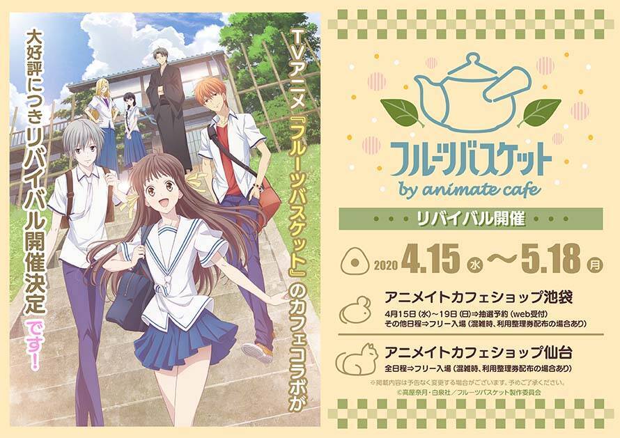 TVアニメ『フルーツバスケット』と「アニメイトカフェ」のコラボカフェが、池袋・仙台にてリバイバル開催決定!