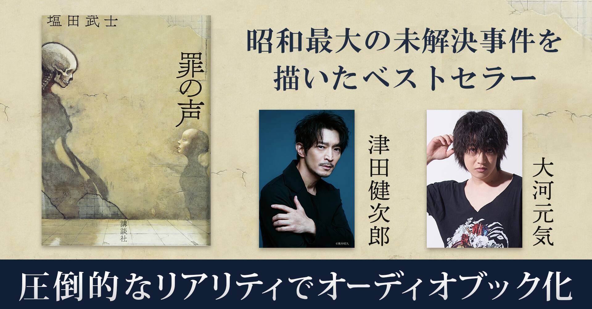 長編ミステリー作品「罪の声」が、声優の津田健次郎さん、大河元気さんほか9名出演でオーディオブック化されました!