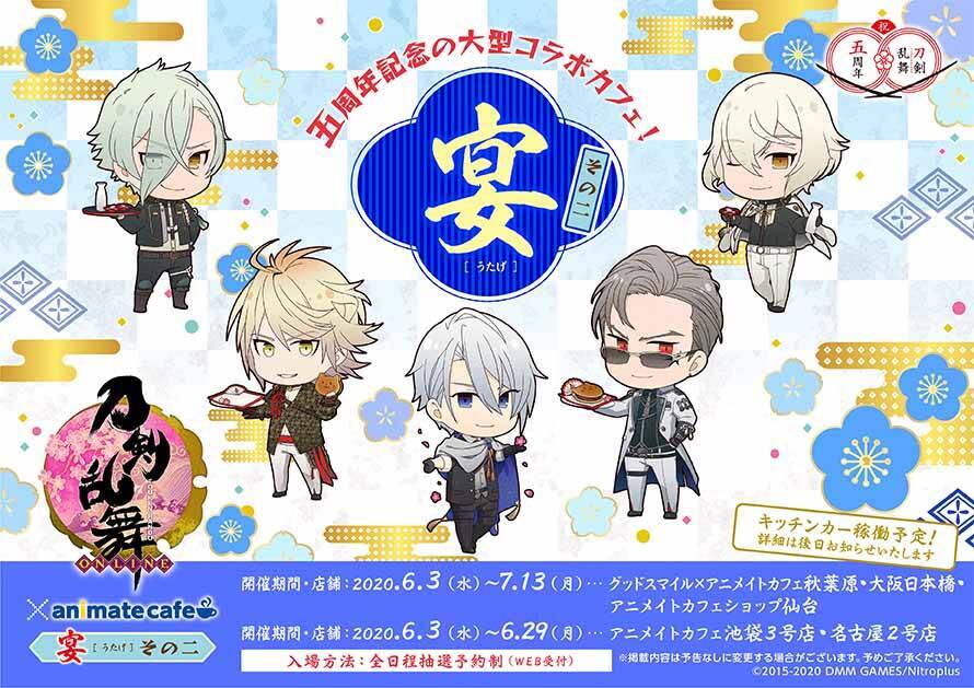 サービス開始5周年記念の大型コラボカフェ『刀剣乱舞-ONLINE-』宴 その二が、「アニメイトカフェ」にて開催決定!