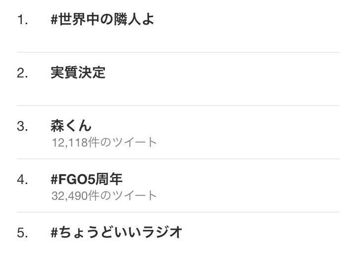 各都県の新聞を購入したファンにより次々とTwitterに報告のツイートが投稿され、先日と同様に「#FGO5周年」がトレンド入りを果たしました!