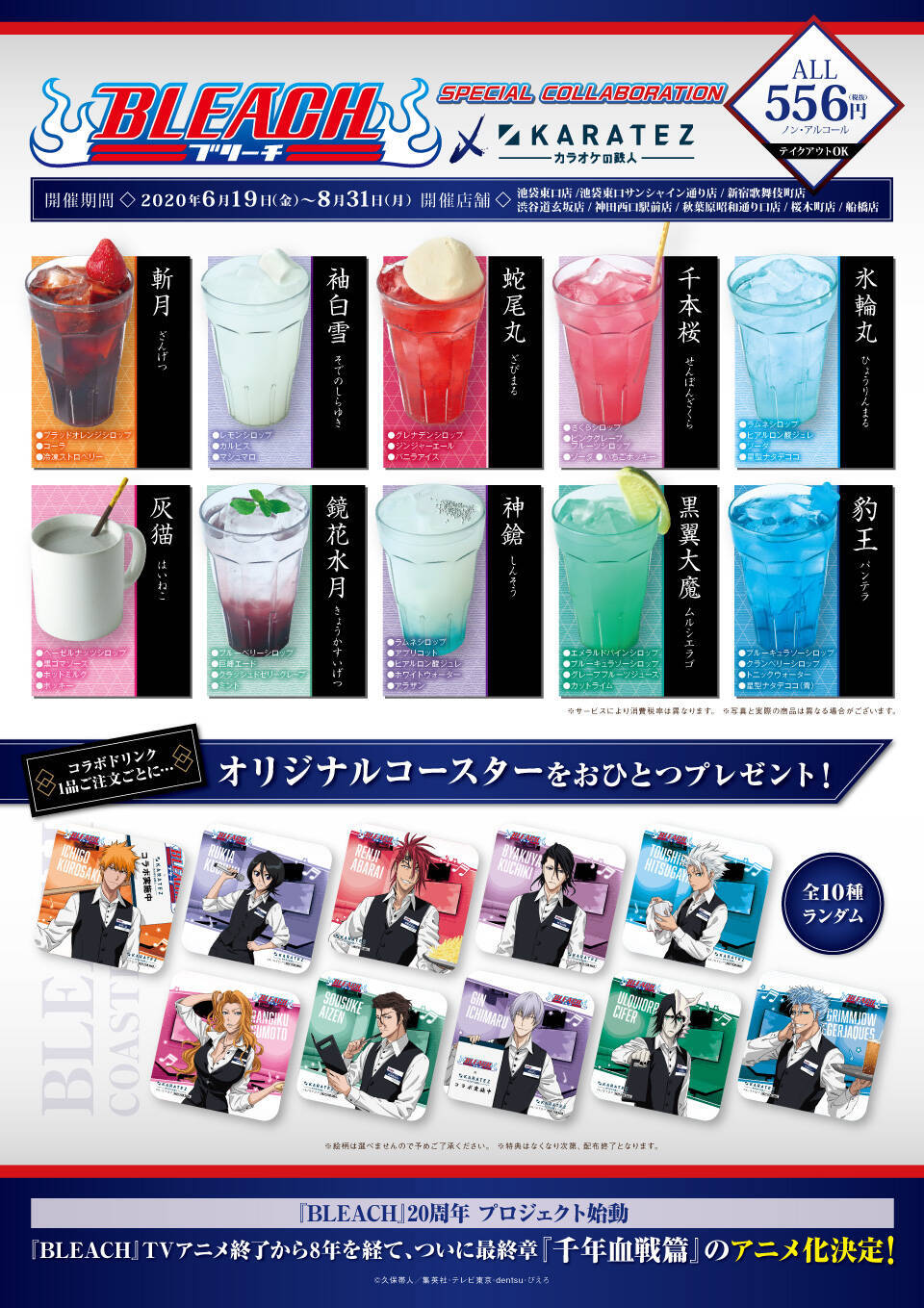 ★気になるドリンク内容などはこちら★【TVアニメ『BLEACH』×カラオケの鉄人】コラボドリンクはルーム利用がなくてもテイクアウトOK!コラボ限定グッズはECサイト販売も決定です!!是非こちらも合わせてご利用ください♪ pic.twitter.com/Jr9chkSdQR