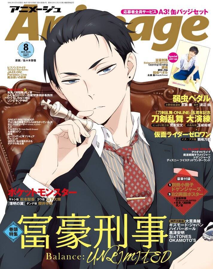 7月10日に発売される「アニメージュ8月号」の表紙&巻頭特集に、2020年7月16日(木)より フジテレビほか“ノイタミナ”枠にて放送開始となるTVアニメ『富豪刑事 Balance:UNLIMITED』が登場!