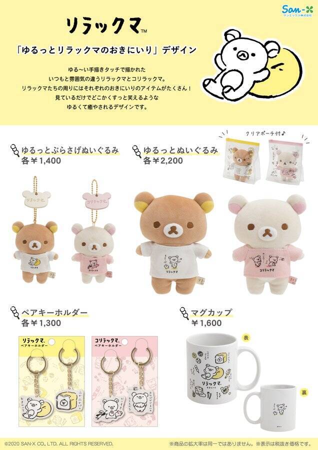 サンエックスの大人気キャラクターであり気ぐるみのクマ・リラックマから、「ゆるっとリラックマのおきにいり」デザインのグッズが登場!