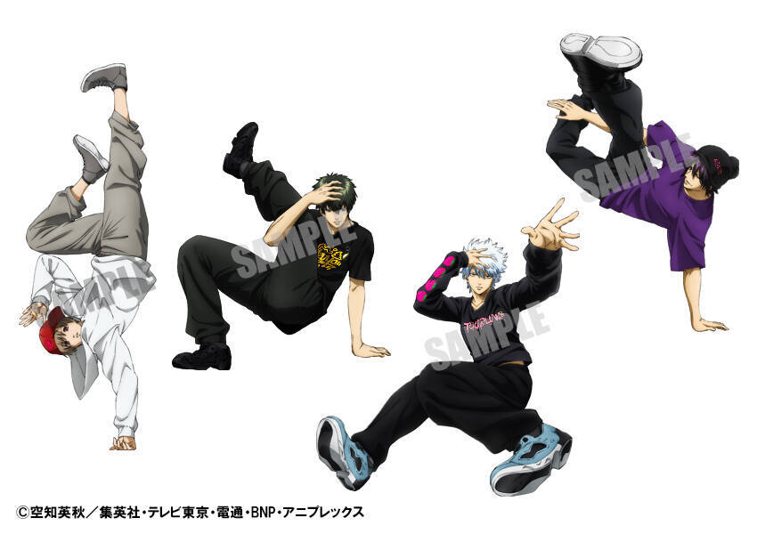 この度公開された新規描き下ろしでは銀さん、高杉、土方、沖田がストリートファッションに身を包みブレイクダンスをしている姿が描かれました。