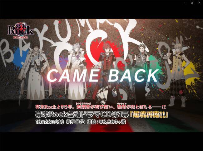 本作のドラマCD第1幕「超魂再臨!!」より、待望の新曲「CAME BACK」のミュージックビデオが公開となりました!