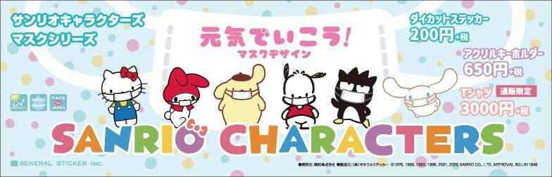 ハローキティやポムポムプリンなどのサンリオキャラクターたちがマスクを付けたデザインの「元気でいこう!マスクデザイン」グッズが、ステッカー屋「ゼネラルステッカー」にて発売中!