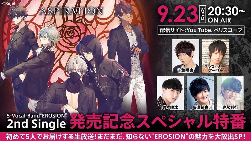 本プロジェクトより誕生したバンド「EROSION(エロージョン)」の2ndシングル発売を記念し、「5-Vocal-Band“EROSION”2nd Single 発売記念スペシャル特番」が放送されます。