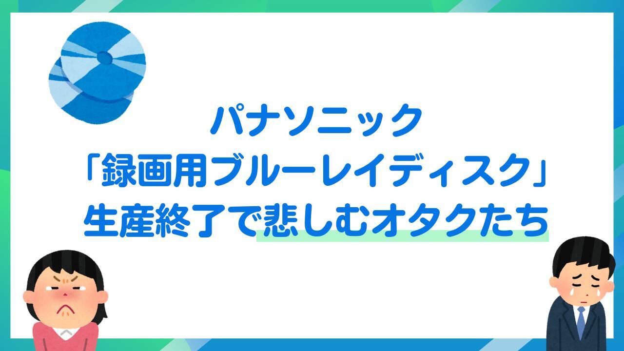 「パナソニック」録画用ブルーレイディスク生産終了の発表を受け、Twitterでは「めっちゃショックです」「パナソニックは品質が安定してたから好きでした!つらい!」と、悲しみの声が寄せられました。また、「映像に残らない推しのテレビ番組はどこに保存すれば…!」「オタクは録画保存しないと死ぬ」「TV放送版がBD版で修正されることもあるから、録画は必要なんだ!!」と、オタクは映像を録画して手元に残しておきたいという習性も明らかに。
