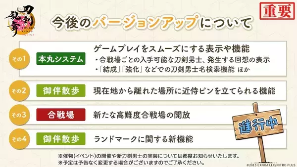 「刀剣乱舞ONLINE」さらなるアップデート