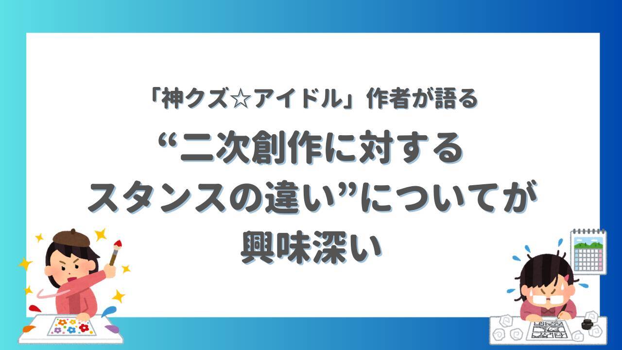 話題になっているのは、「神クズ☆アイドル」の作者・いそふらぼん肘樹先生が、二次創作に対するスタンスの違いについて語ったツイートです。