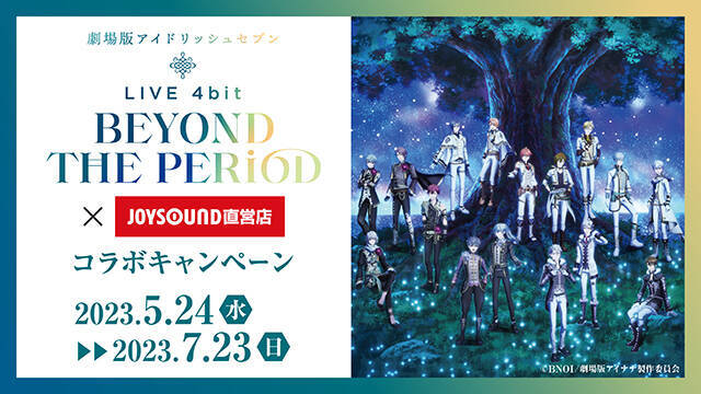 「『劇場版アイドリッシュセブン LIVE 4bit BEYOND THE PERiOD』×JOYSOUND直営店コラボキャンペーン」は、2023年5月24日(水)~7月23日(日)までの期間で開催。東京・愛知・大阪の4店舗にはカラオケコラボルームが登場します。